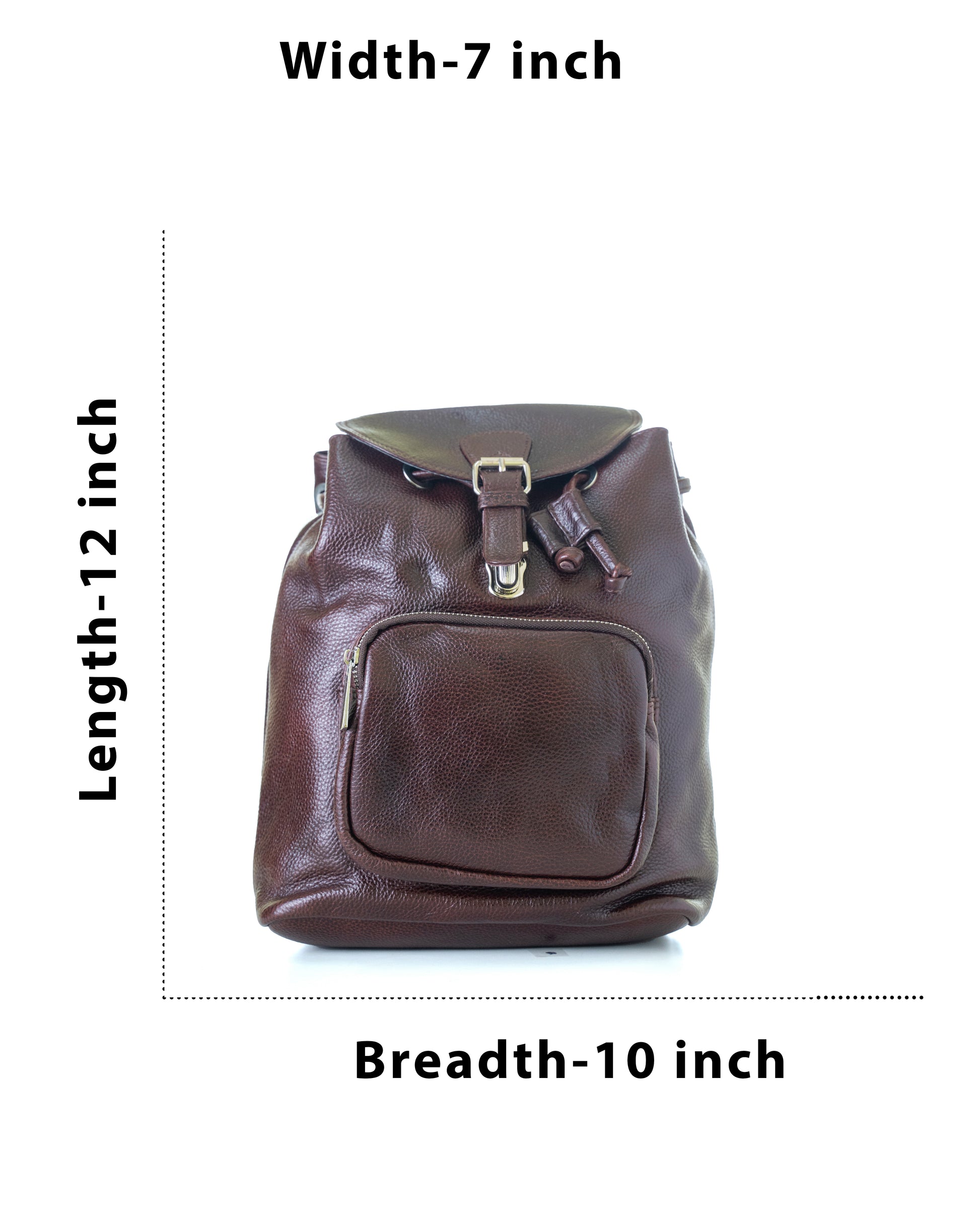 Elevate your everyday style with this sophisticated brown leather drawstring backpack. Crafted with premium leather that showcases a rich textural grain, this classic backpack combines timeless design with practical functionality. The spacious main compartment features a secure drawstring closure topped with a fold-over flap and buckle detail. A convenient front zip pocket provides quick access to essential items, while the adjustable shoulder straps ensure comfortable carrying for various body types. The silver-toned hardware adds a refined touch to the overall aesthetic. Perfect for both casual outings and professional settings, this versatile backpack offers ample storage space while maintaining a sleek, minimalist silhouette. The durable leather construction promises to develop a beautiful patina over time, making each bag uniquely yours. Whether you're commuting to work or embarking on weekend adventures, this backpack delivers both style and practicality in equal measure.