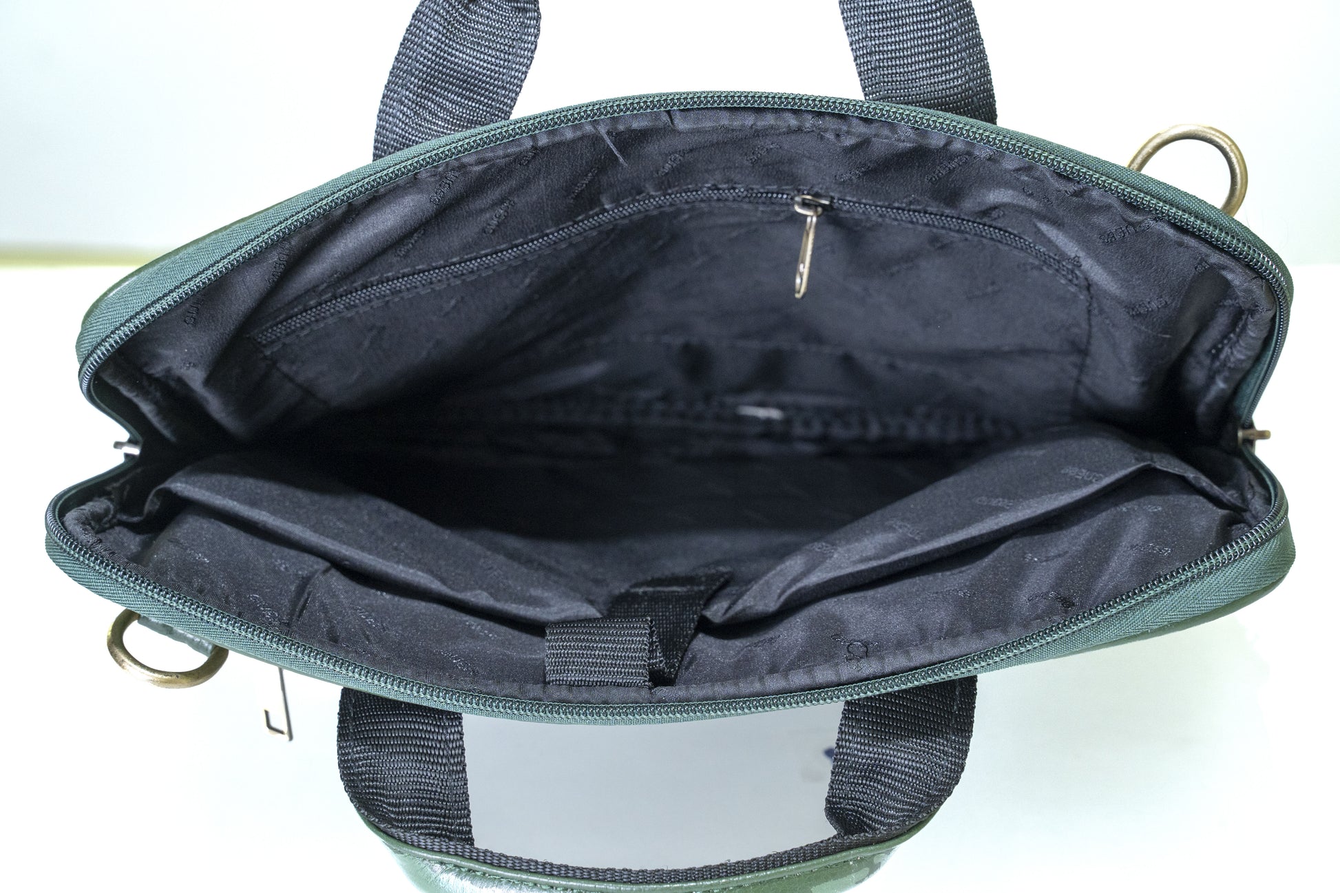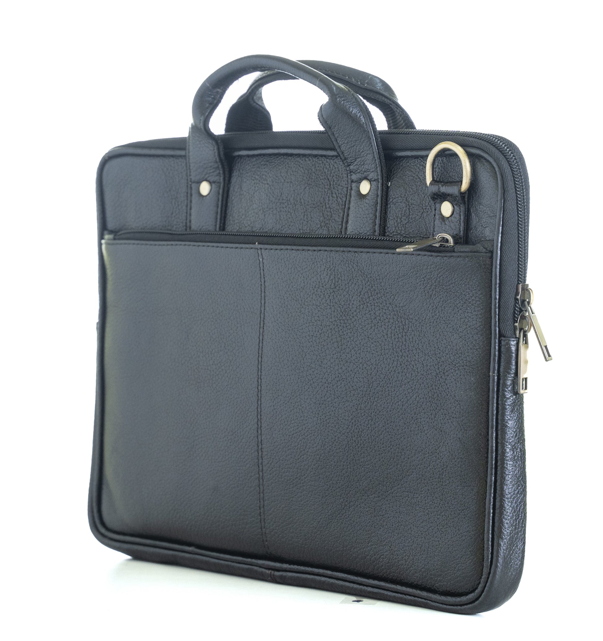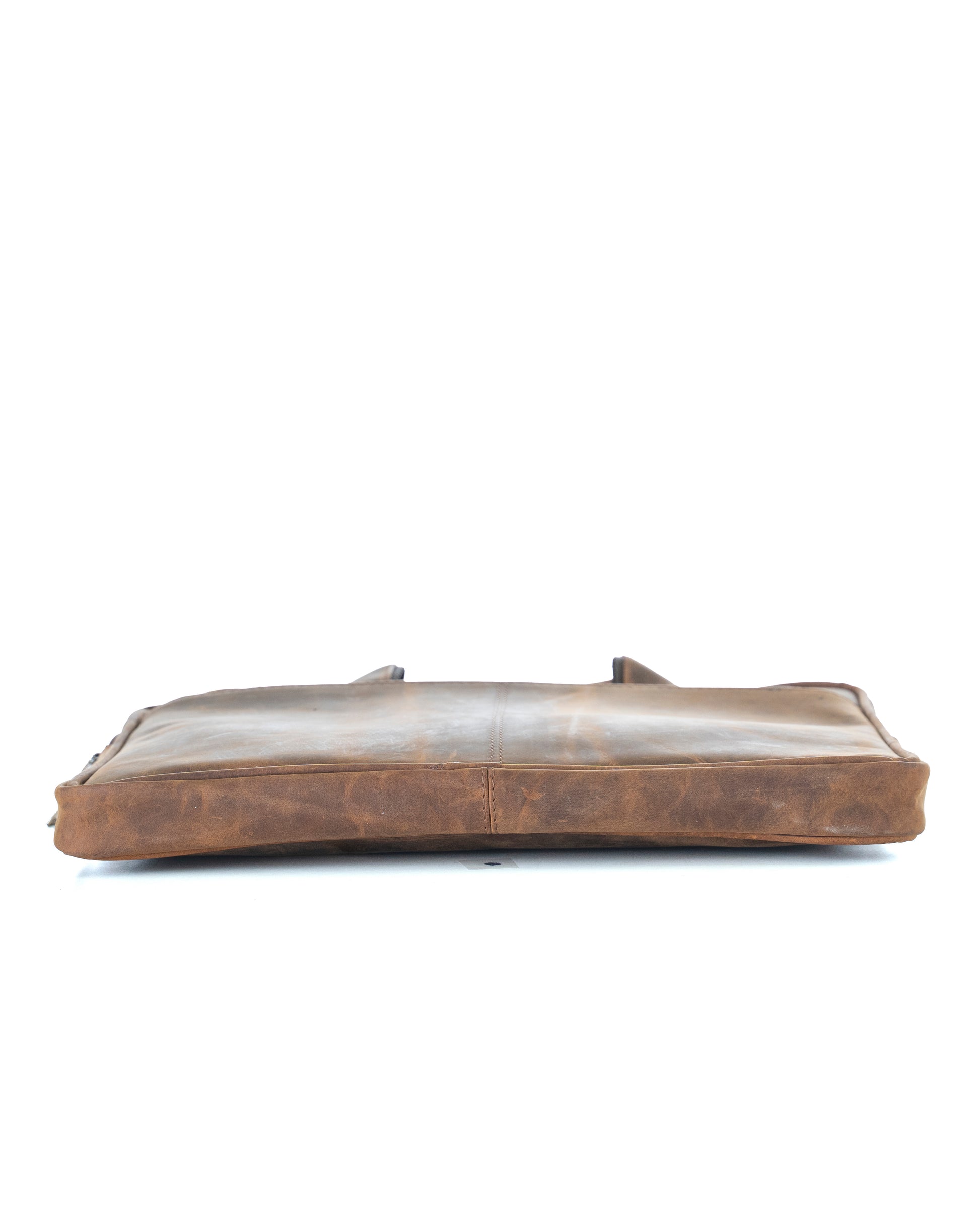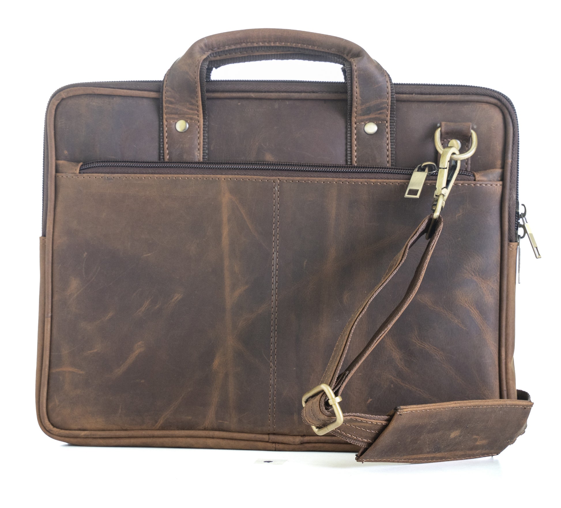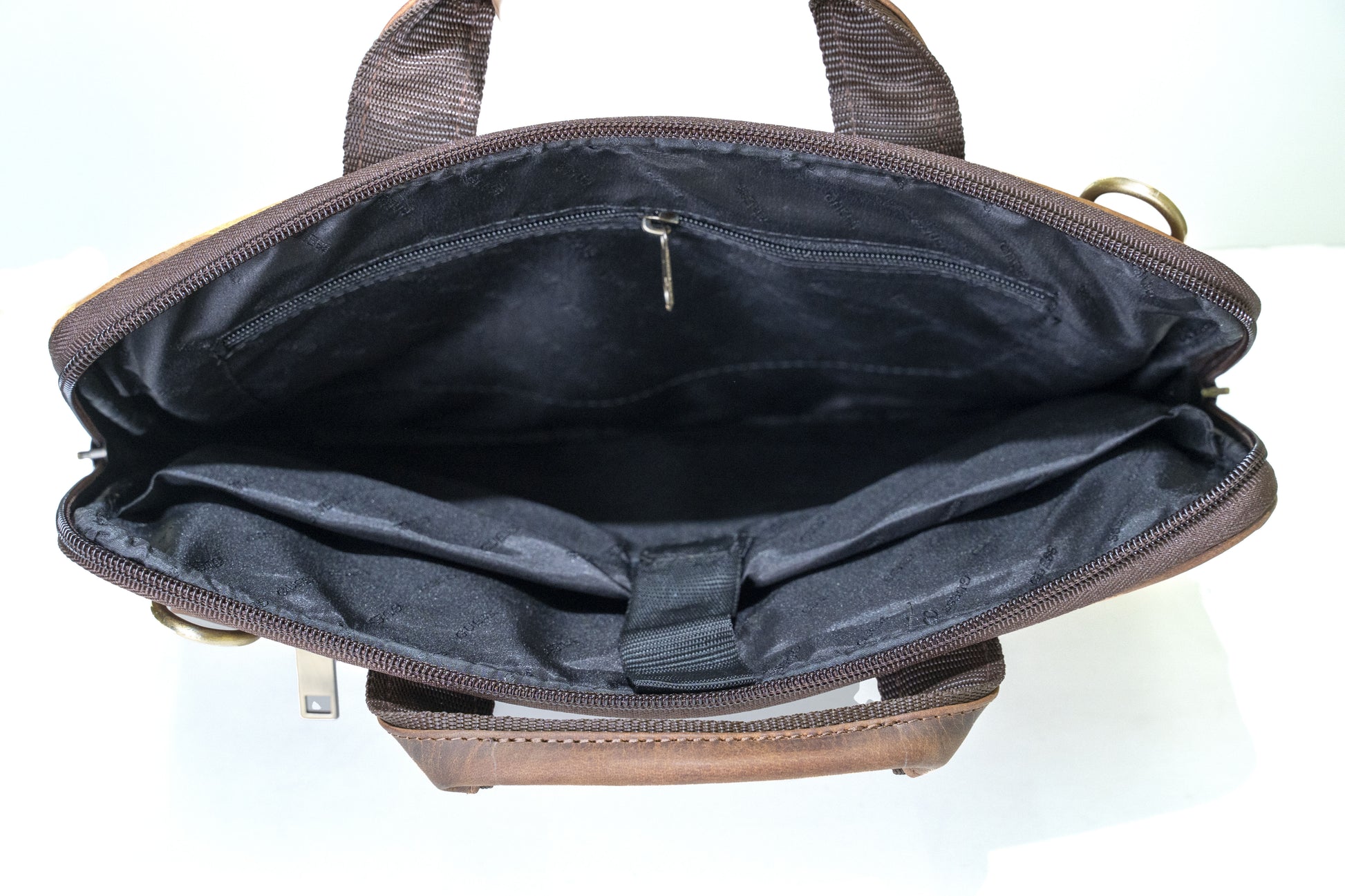 Elevate your professional presence with this sophisticated brown leather briefcase. Crafted from premium leather, this business bag seamlessly combines classic style with modern functionality. The spacious interior is perfect for carrying your laptop and essential documents, while multiple compartments help keep you organised. Distinguished by its brass hardware accents and reinforced leather corners, this briefcase exhibits exceptional attention to detail. The adjustable shoulder strap offers versatile carrying options, complementing the sturdy top handles. The main compartment features a secure zip closure, and additional exterior pockets provide quick access to frequently needed items. The rich brown colour and textured leather finish develop a beautiful patina over time, making each bag uniquely yours. Whether you're heading to important meetings or daily office commutes, this briefcase delivers both practicality and refined aesthetics.