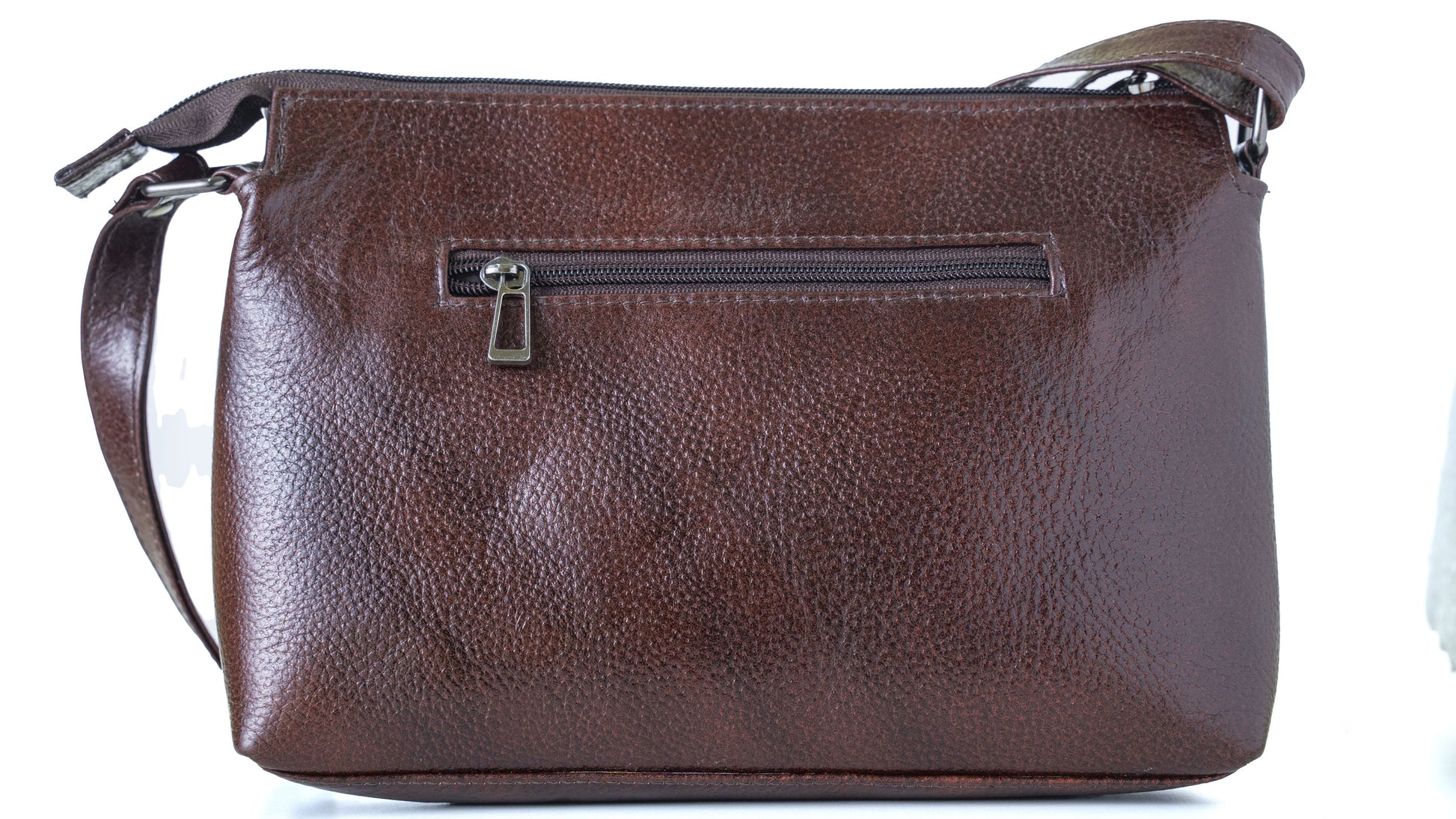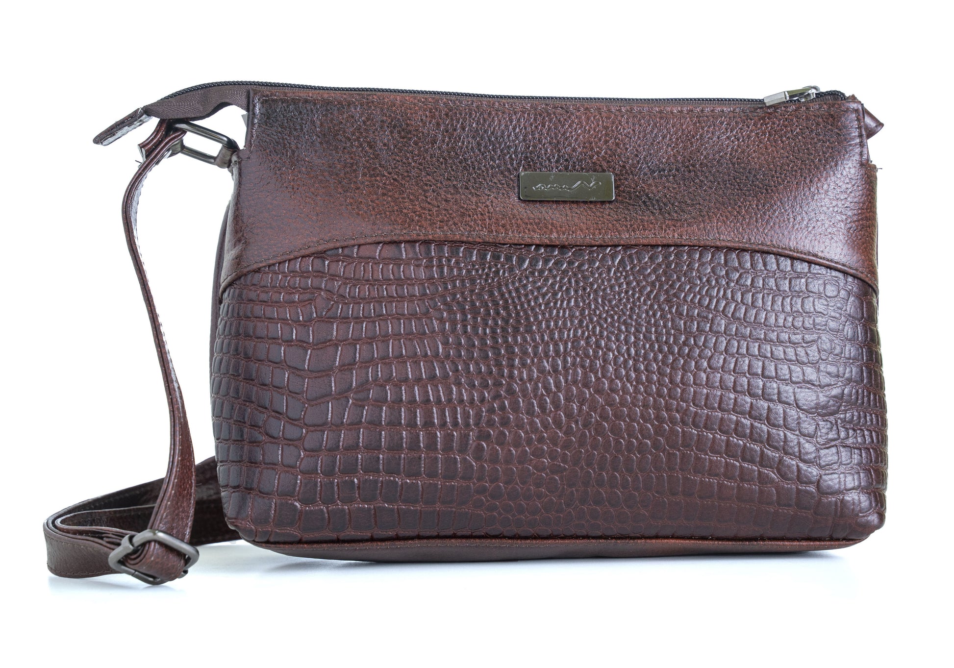 Elevate your everyday style with this sophisticated brown leather crossbody bag featuring an eye-catching crocodile pattern texture. The bag's thoughtful design incorporates multiple compartments to keep your essentials organised, including a secure rear zip pocket for valuable items. Crafted with premium leather that develops a beautiful patina over time, this versatile accessory combines practicality with refined aesthetics. The adjustable shoulder strap ensures comfortable carrying at your preferred length, while the main compartment offers ample space for daily necessities. The sleek metal hardware and brand plate add subtle sophistication to its classic silhouette. Perfect for both casual outings and formal occasions, this timeless bag seamlessly transitions from day to evening wear. The durable construction and quality stitching ensure this accessory will be a lasting addition to your collection.